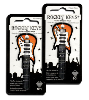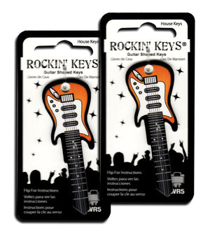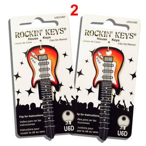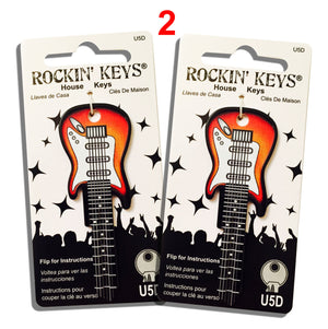 2 Sunburst Electric Guitar Shaped Rockin' Keys. Classic Sunburst Electric Rockin' keys can duplicate with Kwikset KW1/KW10, Schlage SC1, Weiser WR5/WR3, Universal Yale U6D/Y1 or Universal Yale 5 pin U5D. Be sure to check back we have more guitar designs coming soon!