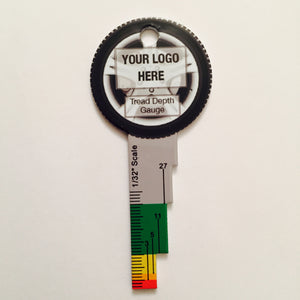 The custom printed Tread Depth Gauge (tool) is the perfect item for Dealerships and Tire Center's. It also has applications for many state programs in regulating tread depth as a safety measure as well as State Patrol office's are welcome, we give discounts to you! All custom orders take 45-60 days lead time, minimums required. made of aluminum core, high resolution printing and durable UV coat finish that shines and protects. Very unique item!