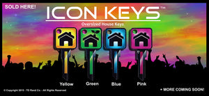 This Full Set 4 pcs. Bright colored Over sized Head ICON Keys. 1 of each, blue, green, yellow, pink. 1 1/8" Bow size and bright colors for easy identification. Over sized Icon Keys can duplicate with Kwikset KW1/KW10, Schlage SC1, Weiser WR5/WR3, Be sure to check back we have more cool designs coming soon! Super Deal at only 2.50 each!