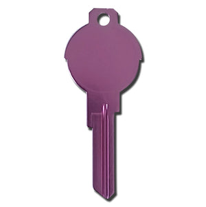 Pink Titanium Universal Surface Deco Key. Super light weight Tinted Titanium Alloy. Oversized key head. The inside circle is a 1" flat surface which can be laser etched, engraved or combined with customized stickers (various types available, inquire within). Bright colors for easy identification. Over sized Icon Keys can duplicate with Kwikset KW1/KW10. Schlage SC1, Weiser WR5/WR3, Coming Soon. Be sure to check back we have more cool designs coming soon!