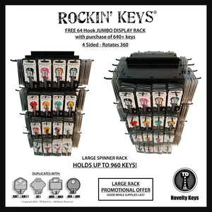 {"id":7612197306431,"title":"MEGA Rack Spinner Display with 640-960 Keys - Rack FREE with Purchase!","handle":"rockin-keys-640-keys-and-free-mega-rack-retail-spinner-display-64-hook","description":"\u003cdiv class=\"qsc-html-content\"\u003e\n\u003cp\u003e\u003cspan style=\"color: #000000; font-family: arial, verdana, helvetica, sans-serif; font-size: 11px; font-style: normal; font-variant: normal; font-weight: normal; letter-spacing: normal; line-height: 11px; orphans: auto; text-align: left; text-indent: 0px; text-transform: none; white-space: normal; widows: auto; word-spacing: 0px; -webkit-text-stroke-width: 0px; background-color: #ffffff; display: inline !important; float: none;\"\u003eNew - Rockin' Keys 640+ Key Wholesale Order includes FREE MEGA RACK! 64 HOOK Retail Spinner Display. 4 Sided, rotates 360 degrees.\u003c\/span\u003e\u003cspan style=\"color: #000000; font-family: arial, verdana, helvetica, sans-serif; font-size: 11px; font-style: normal; font-variant: normal; font-weight: normal; letter-spacing: normal; line-height: 11px; orphans: auto; text-align: left; text-indent: 0px; text-transform: none; white-space: normal; widows: auto; word-spacing: 0px; -webkit-text-stroke-width: 0px; background-color: #ffffff; display: inline !important; float: none;\"\u003e These make it easy. \u003c\/span\u003e\u003c\/p\u003e\n\u003cp\u003e\u003cspan style=\"color: #000000; font-family: arial, verdana, helvetica, sans-serif; font-size: 11px; font-style: normal; font-variant: normal; font-weight: normal; letter-spacing: normal; line-height: 11px; orphans: auto; text-align: left; text-indent: 0px; text-transform: none; white-space: normal; widows: auto; word-spacing: 0px; -webkit-text-stroke-width: 0px; background-color: #ffffff; display: inline !important; float: none;\"\u003eSTEP 1. Choose your order quantity (640, 768 or 960) keys, proceed to checkout. \u003c\/span\u003e\u003c\/p\u003e\n\u003cp\u003e\u003cspan style=\"color: #000000; font-family: arial, verdana, helvetica, sans-serif; font-size: 11px; font-style: normal; font-variant: normal; font-weight: normal; letter-spacing: normal; line-height: 11px; orphans: auto; text-align: left; text-indent: 0px; text-transform: none; white-space: normal; widows: auto; word-spacing: 0px; -webkit-text-stroke-width: 0px; background-color: #ffffff; display: inline !important; float: none;\"\u003eSTEP 2. Choose your keys using the order forms on the vendors page and submit by photo or email. \u003c\/span\u003e\u003c\/p\u003e\n\u003cp\u003e\u003cspan style=\"color: #000000; font-family: arial, verdana, helvetica, sans-serif; font-size: 11px; font-style: normal; font-variant: normal; font-weight: normal; letter-spacing: normal; line-height: 11px; orphans: auto; text-align: left; text-indent: 0px; text-transform: none; white-space: normal; widows: auto; word-spacing: 0px; -webkit-text-stroke-width: 0px; background-color: #ffffff; display: inline !important; float: none;\"\u003eEach hook can hold up to 15 keys.\u003c\/span\u003e\u003c\/p\u003e\n\u003cp\u003e\u003cspan style=\"color: #000000; font-family: arial, verdana, helvetica, sans-serif; font-size: 11px; font-style: normal; font-variant: normal; font-weight: normal; letter-spacing: normal; line-height: 11px; orphans: auto; text-align: left; text-indent: 0px; text-transform: none; white-space: normal; widows: auto; word-spacing: 0px; -webkit-text-stroke-width: 0px; background-color: #ffffff; display: inline !important; float: none;\"\u003e640 keys - 10 keys per hook.\u003c\/span\u003e\u003c\/p\u003e\n\u003cp\u003e\u003cspan style=\"color: #000000; font-family: arial, verdana, helvetica, sans-serif; font-size: 11px; font-style: normal; font-variant: normal; font-weight: normal; letter-spacing: normal; line-height: 11px; orphans: auto; text-align: left; text-indent: 0px; text-transform: none; white-space: normal; widows: auto; word-spacing: 0px; -webkit-text-stroke-width: 0px; background-color: #ffffff; display: inline !important; float: none;\"\u003e768 Keys - \u003c\/span\u003e\u003cspan style=\"color: #000000; font-family: arial, verdana, helvetica, sans-serif; font-size: 11px; font-style: normal; font-variant: normal; font-weight: normal; letter-spacing: normal; line-height: 11px; orphans: auto; text-align: left; text-indent: 0px; text-transform: none; white-space: normal; widows: auto; word-spacing: 0px; -webkit-text-stroke-width: 0px; background-color: #ffffff; display: inline !important; float: none;\"\u003e12 keys per hook \u003c\/span\u003e\u003c\/p\u003e\n\u003cp\u003e\u003cspan style=\"color: #000000; font-family: arial, verdana, helvetica, sans-serif; font-size: 11px; font-style: normal; font-variant: normal; font-weight: normal; letter-spacing: normal; line-height: 11px; orphans: auto; text-align: left; text-indent: 0px; text-transform: none; white-space: normal; widows: auto; word-spacing: 0px; -webkit-text-stroke-width: 0px; background-color: #ffffff; display: inline !important; float: none;\"\u003e960 Keys -15 keys per hook. \u003c\/span\u003e\u003c\/p\u003e\n\u003cp\u003e\u003cspan style=\"color: #000000; font-family: arial, verdana, helvetica, sans-serif; font-size: 11px; font-style: normal; font-variant: normal; font-weight: normal; letter-spacing: normal; line-height: 11px; orphans: auto; text-align: left; text-indent: 0px; text-transform: none; white-space: normal; widows: auto; word-spacing: 0px; -webkit-text-stroke-width: 0px; background-color: #ffffff; display: inline !important; float: none;\"\u003eRack is pre-assembled, just add your keys and you're ready to ROCK!\u003c\/span\u003e\u003c\/p\u003e\n\u003cp\u003e\u003cspan style=\"color: #000000; font-family: arial, verdana, helvetica, sans-serif; font-size: 11px; font-style: normal; font-variant: normal; font-weight: normal; letter-spacing: normal; line-height: 11px; orphans: auto; text-align: left; text-indent: 0px; text-transform: none; white-space: normal; widows: auto; word-spacing: 0px; -webkit-text-stroke-width: 0px; back